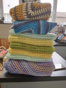 Our shelves of blankets and bedding are running low. I hear the worry and exhaustion in the voices of the people who call me. It stays with me and that’s why me and my mum are doing our bit and are reaching out to all our fellow knitters and crocheters to lend us a hand! Here’s a few examples of our handy work!